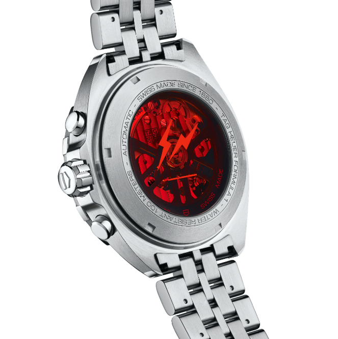Fujiwara’s design combines a ceramic tachymeter bezel with a red-accented dial and a red sapphire crystal caseback, which offers a view onto the Caliber Heuer 02 column wheel chronograph with vertical clutch. His design channels the energy of Heuer’s 1970s classics but with modern updates. But if there’s one vintage Heuer that I’d say it makes me think of most, it’s the ref. 1163V “Viceroy.”